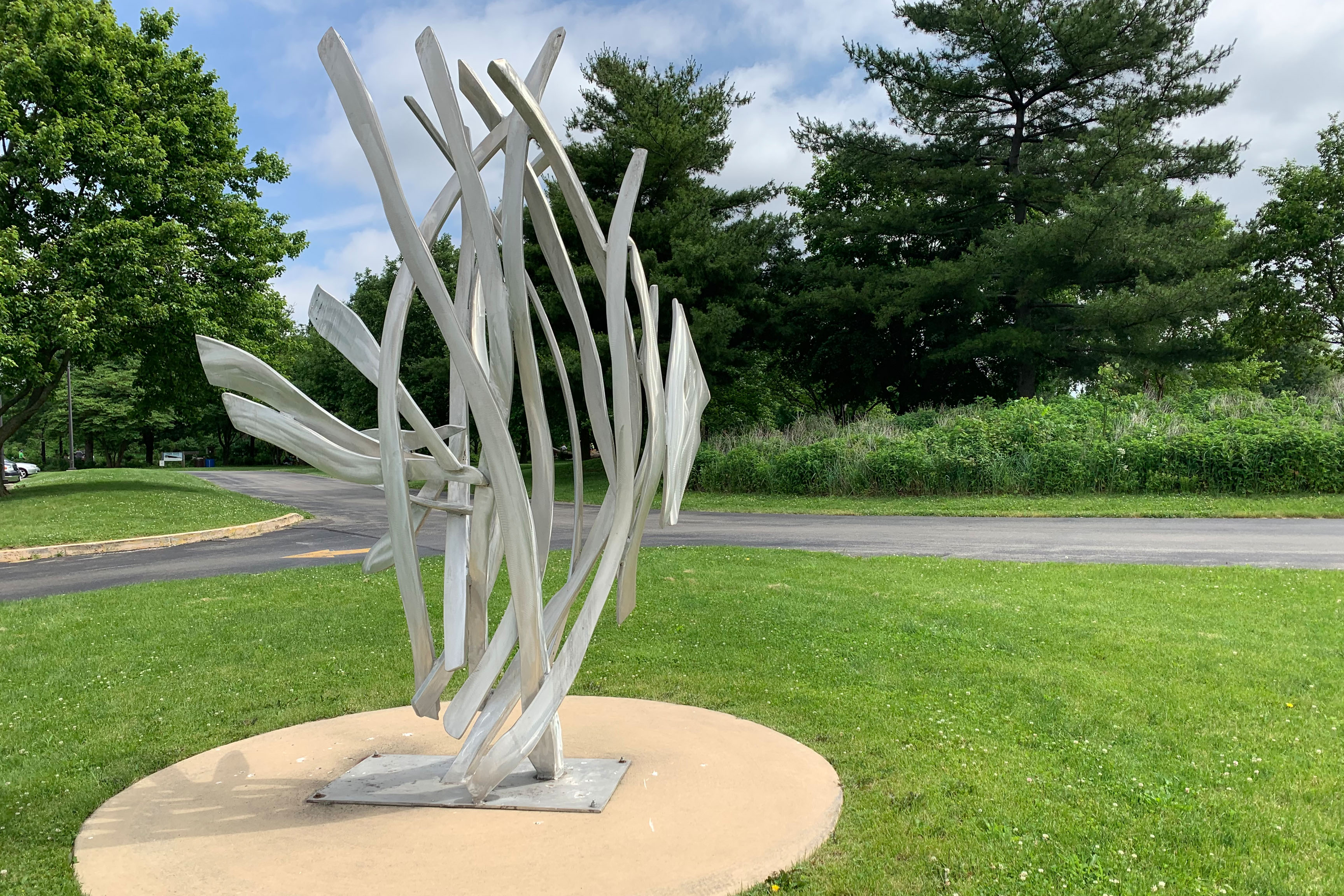 This sculpture creatively uses the shape of water grass to create a multidimensional fish.