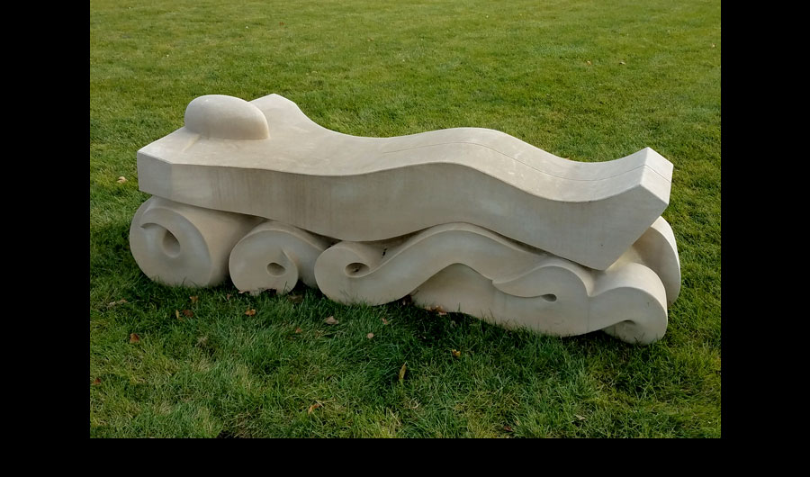 This Lawler work is the second of his in our community and depicts a functional sculpture showing a person floating away on the winds of thought.