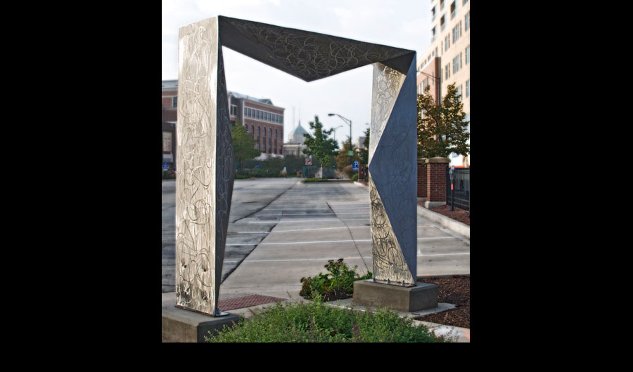 This sculpture is an artistic frame through which to see one of the most popular spots in downtown Champaign.