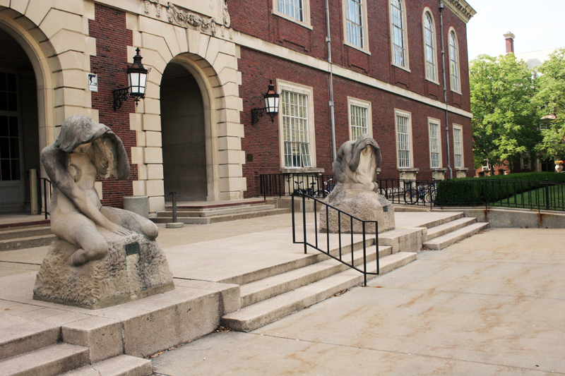 This artwork was created by artist Lorado Taft (1860-1936). The four limestone figures range from 5’ to 7’ high and live in front of the Main Library on the eastern side. The University purchased the sculptures in 1937 from the Lorado Taft collection.