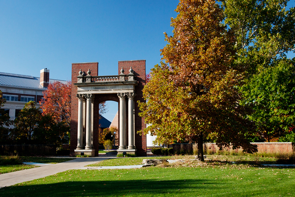 The Hallene Gateway was originally the entrance to University Hall and was destroyed in 1938 after a classroom ceiling collapsed (Leetaru 2004-2011). It was later rediscovered and refurbished.
