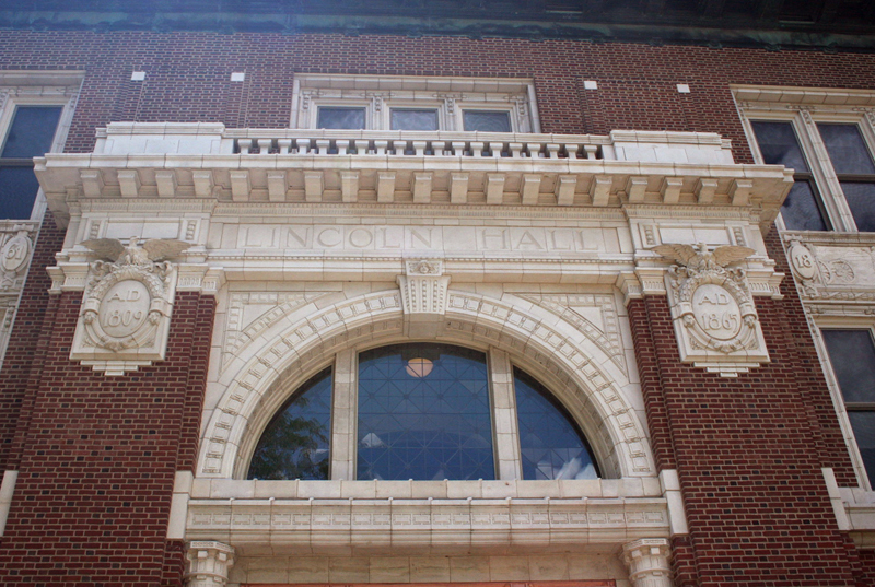 Among the building’s exterior decorations, above the second-floor windows, are quotations from Lincoln’s speeches and writings and medallion portraits of men closely associated with him in his work.