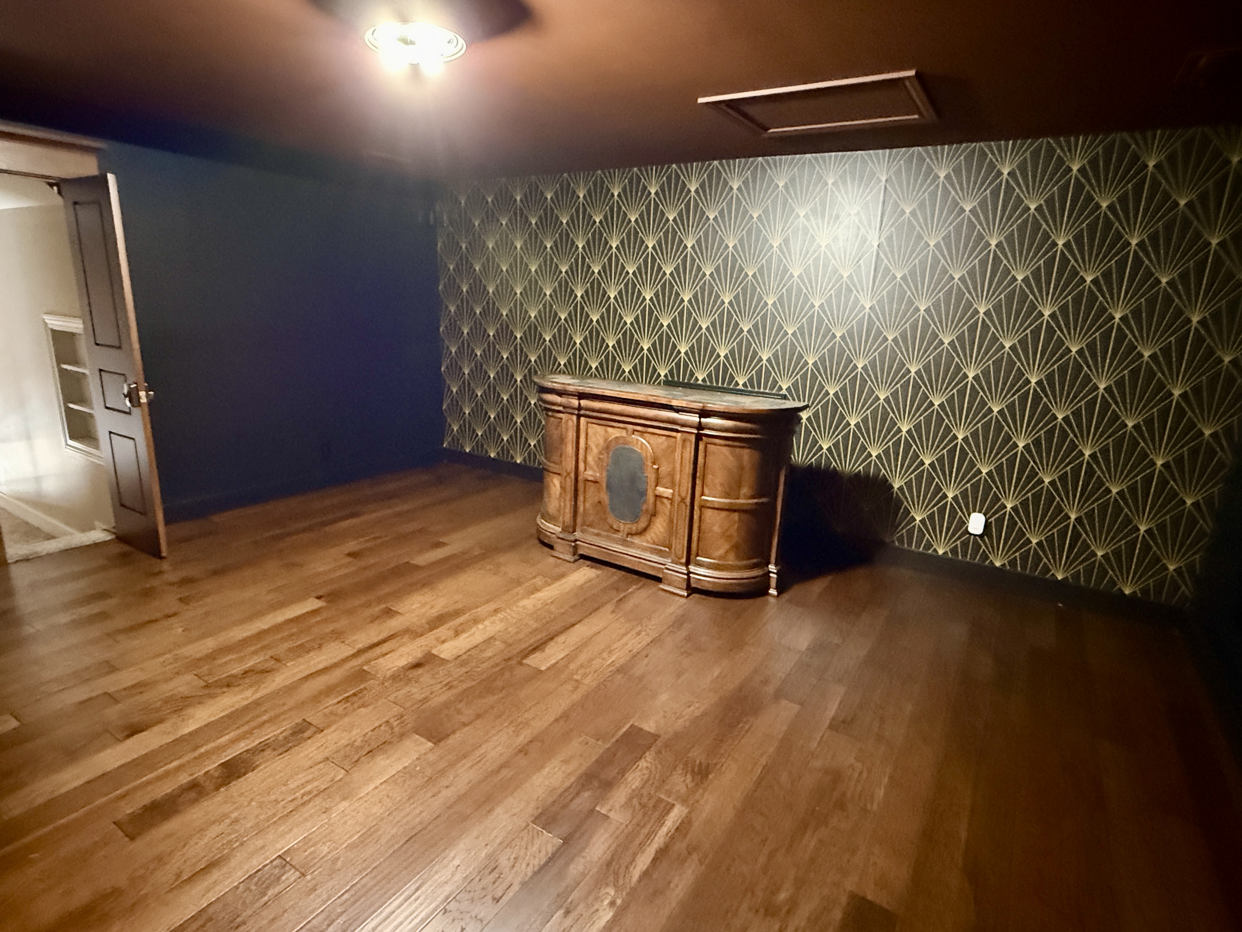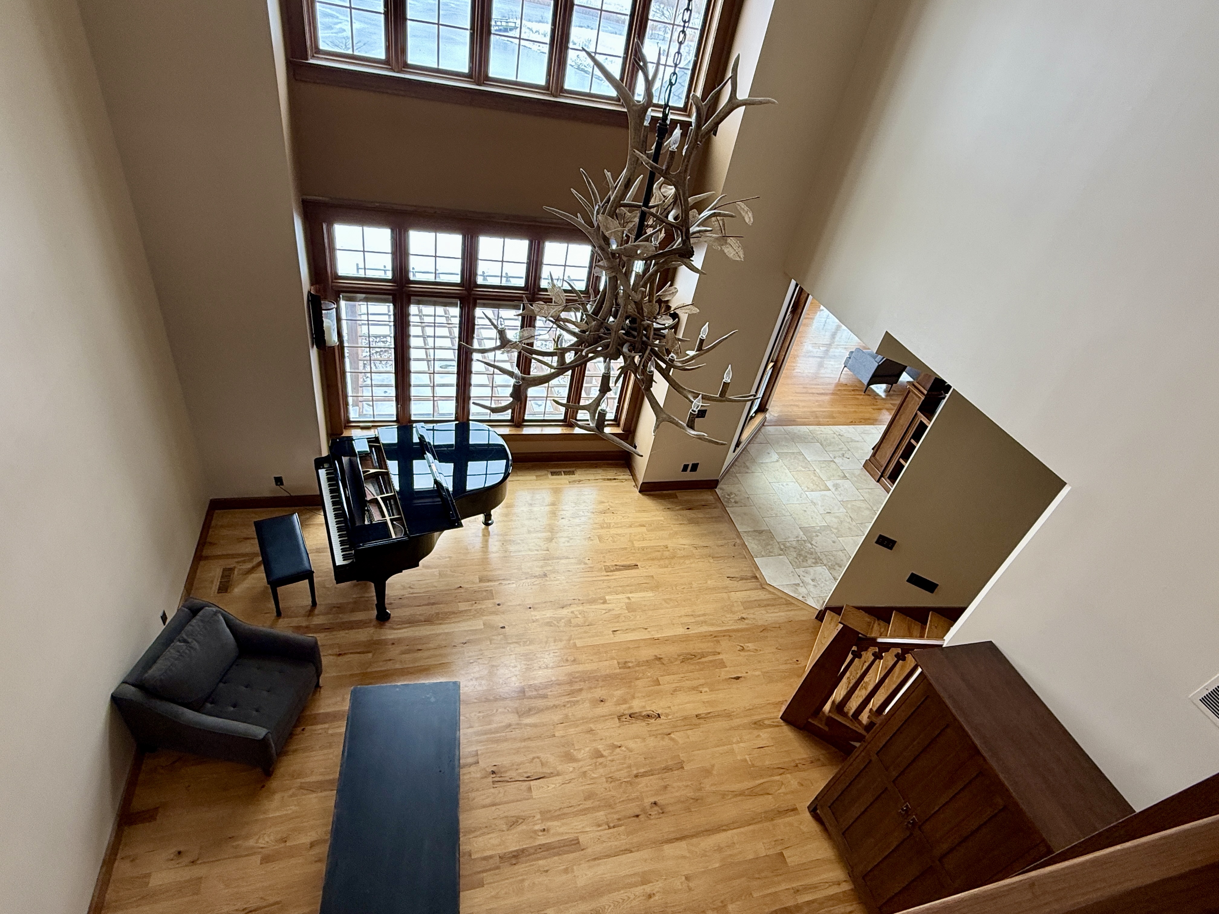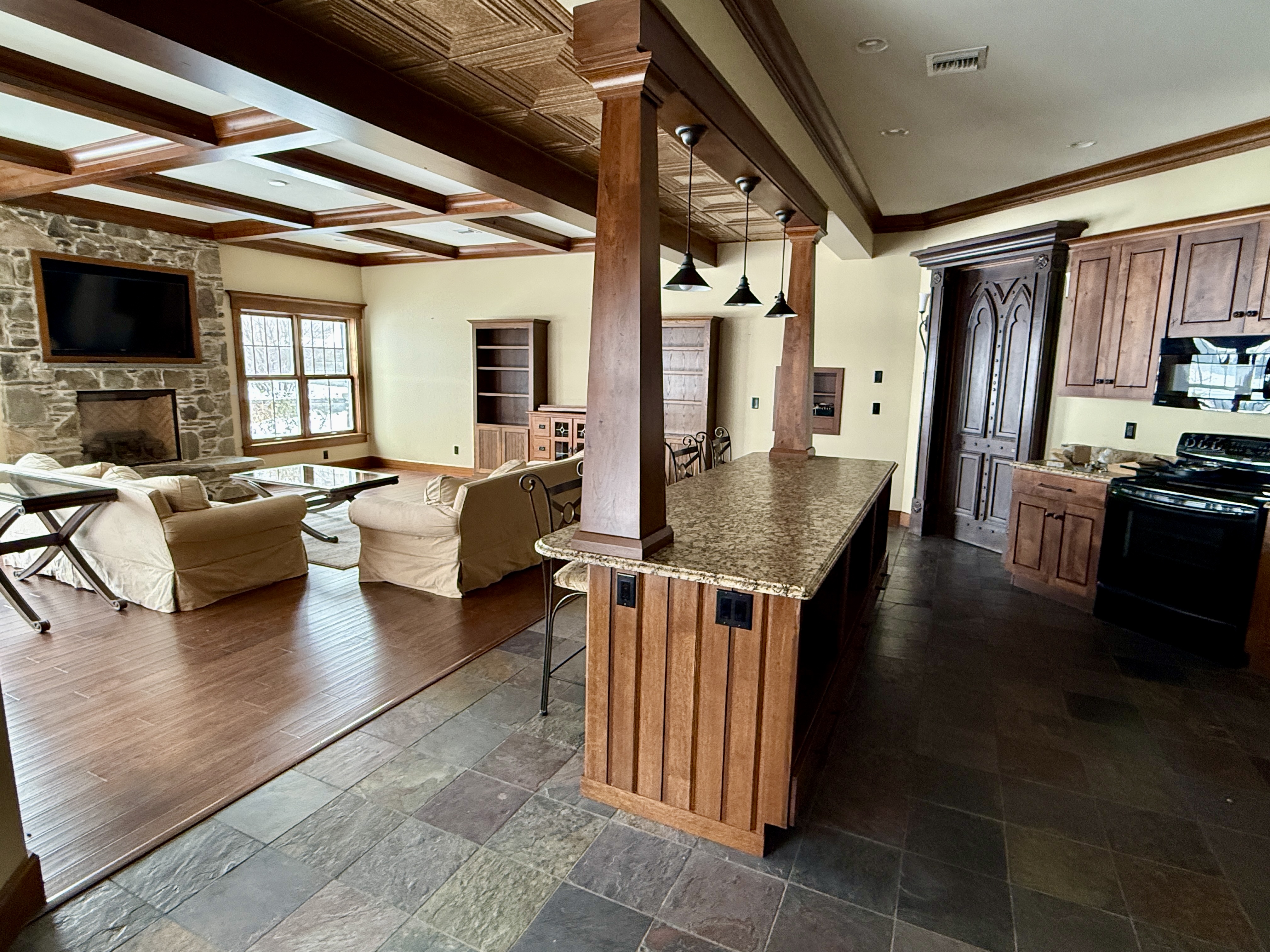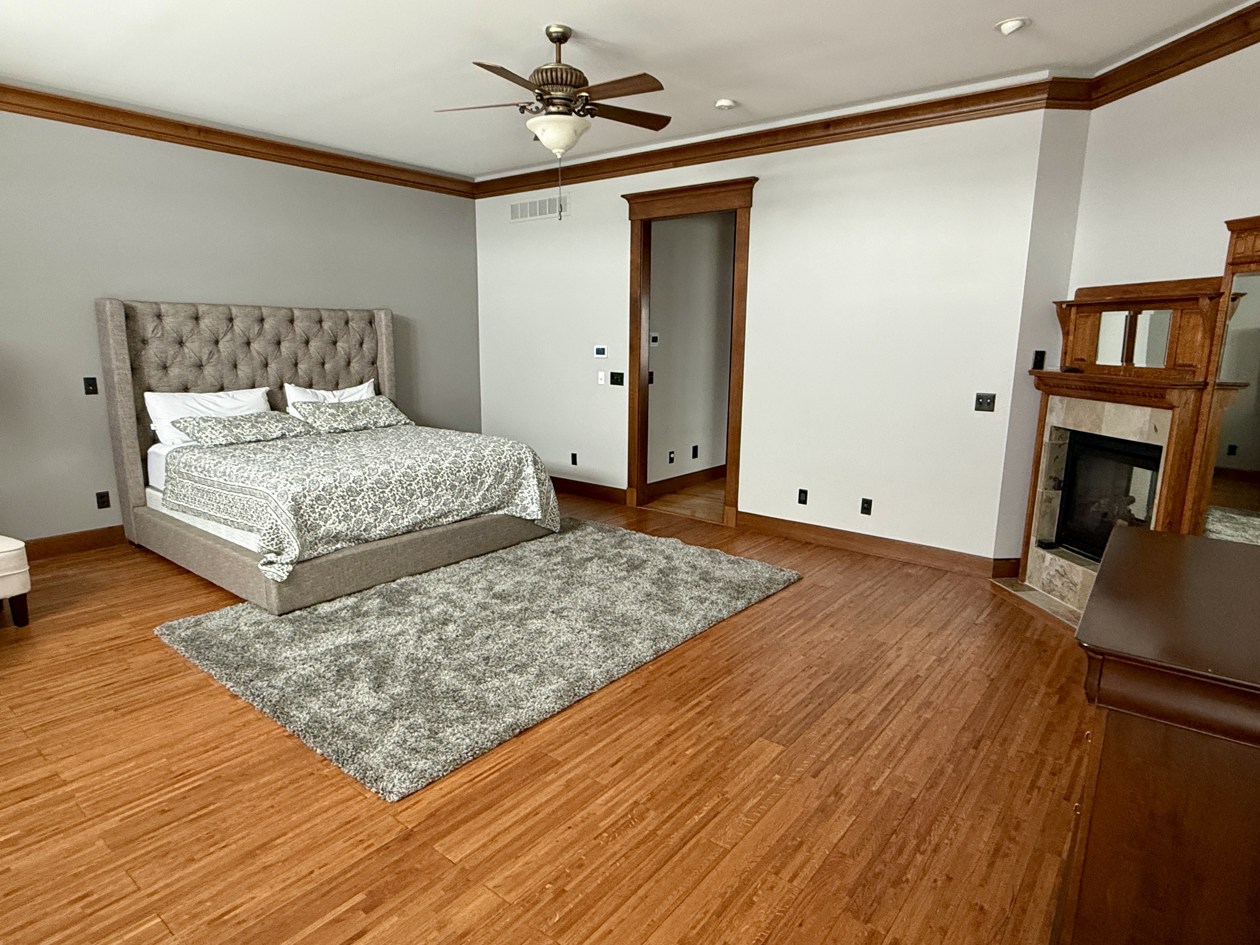 This large house features 6 bedrooms with attached bathrooms, a large kitchen, several entertainment areas, a movie theatre, and other amenities. It is located along a heart-shaped pond and adjacent to the Willow Creek Farm event venue.